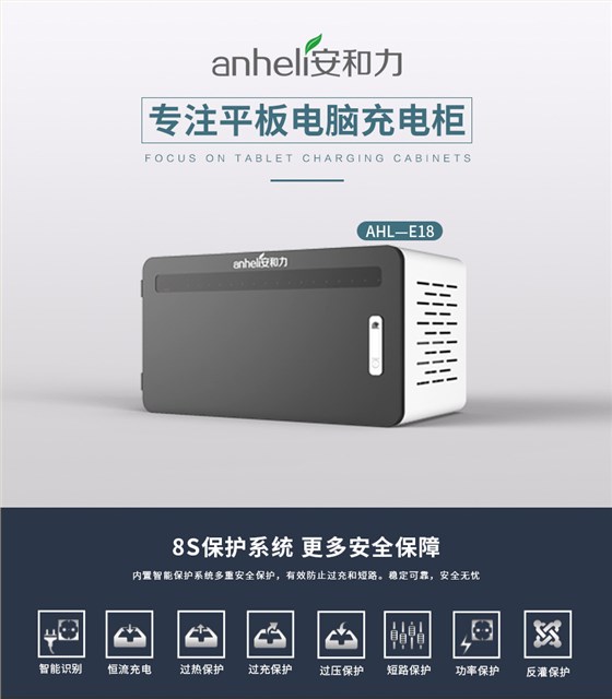 安和力平板電腦充電柜為智慧課堂的電力保障,采用8S保護(hù)系統(tǒng):過充保護(hù)、功率保護(hù)、短路保護(hù)、過熱保護(hù)、過壓保護(hù)、智能識(shí)別、恒流保護(hù)、反灌保護(hù),柜內(nèi)有漏電保護(hù)器,充電安全。